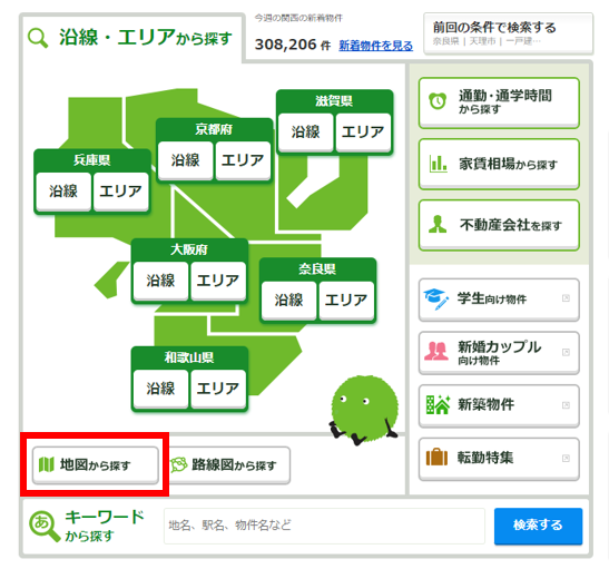 ポータルサイトに入り、物件検索方法は地図検索を行いうことです