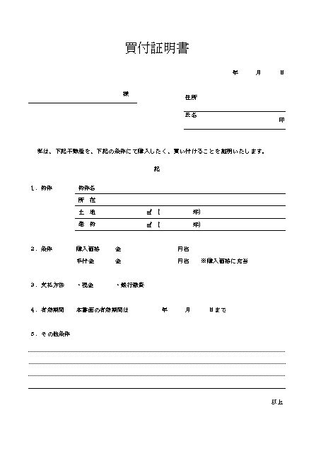 購入希望者が現れたら買付証明書で購入の意思表示をします。